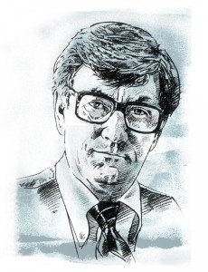 Ebony pencil, line drawing portrait of Rance Crain, line and color